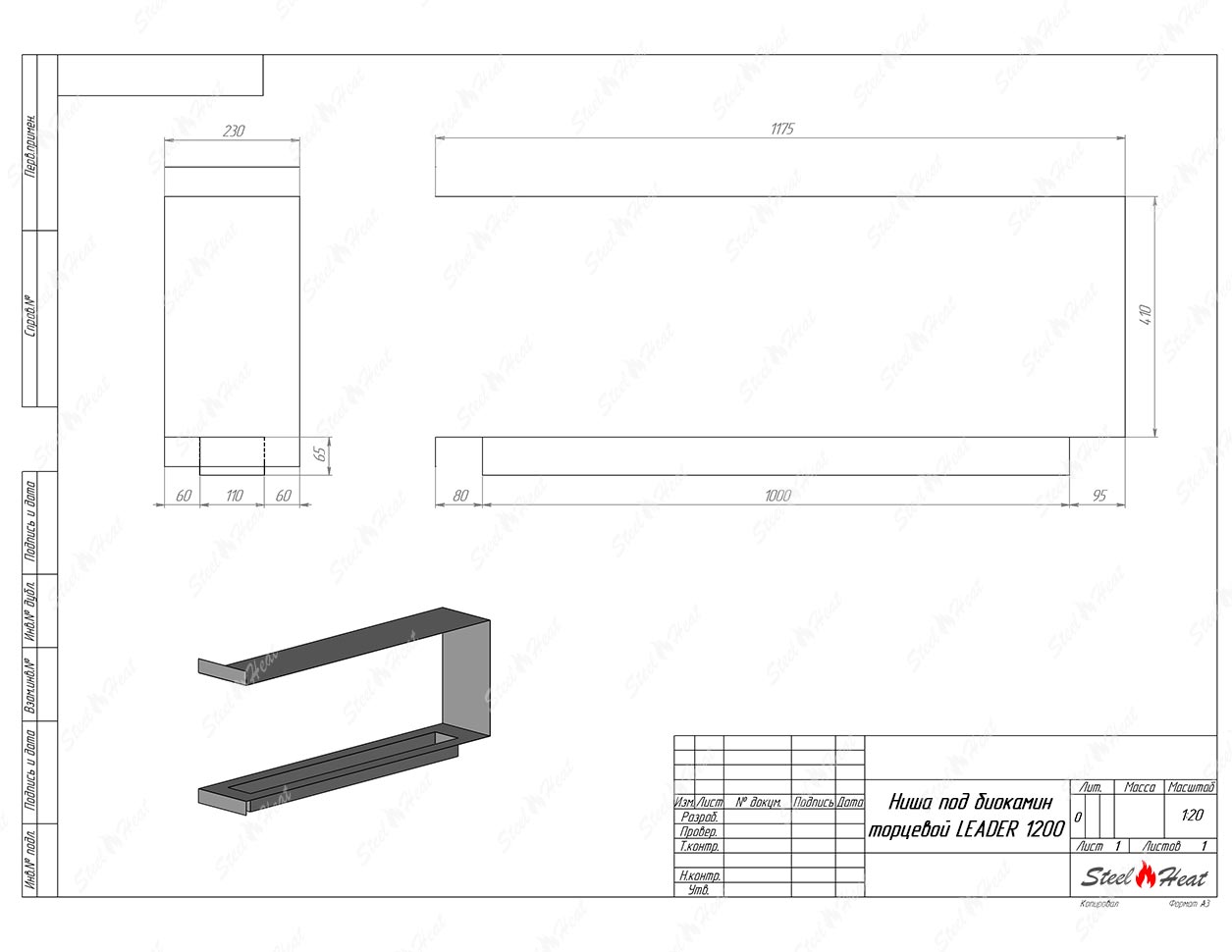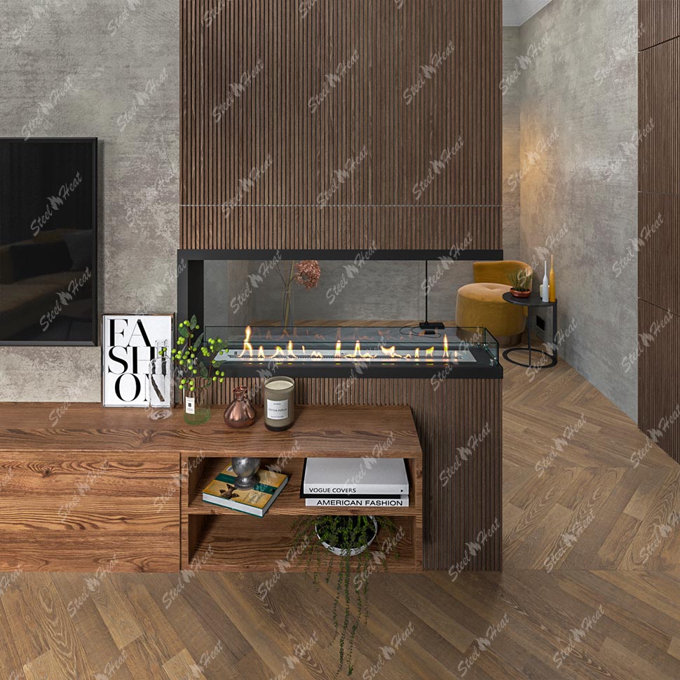 Встраиваемый Биокамин торцевой SteelHeat Leader 1200 предназначен для встраивания в глухие ниши из гипсокартона, кирпича, пеноблоков, бетона.
